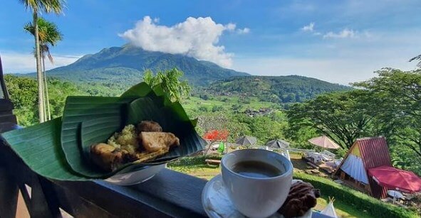 Tempat ini menyuguhkan konsep nongkrong yang berbeda dengan cafe pada umumnya. Karena selain menyediakan beragam menu kuliner, juga terdapat pemandangan alam yang begitu indah ditatap mata sehingga suasana santai bersama orang terdekat akan semakin berkesan.