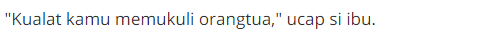 Sang ibu yang sedang terbaring itu menasehati tapi putra bungsunya tidak terima.