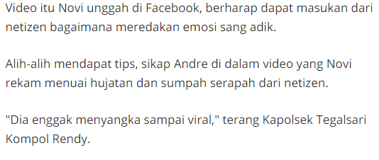 Dirinya mengharuskan merekam video karena kelakuan andre yang membuat tidak tahan dan tidak bisa untuk di nasehati.