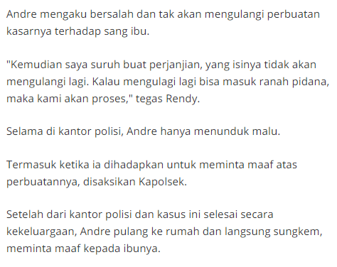 Sang ibu juga sudah meminta kepada andre agar bisa memahami kondisinya waktu itu.