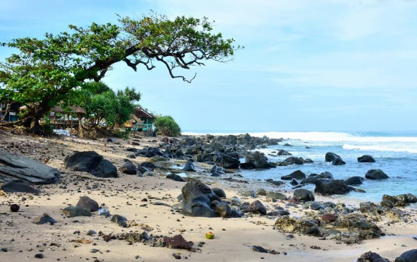 Berada di lokasi yang tidak jauh dari Santolo, pantai ini menyuguhkan hamparan pasir putih yang indah dan air laut yang jernih kebiruan. Tepat di bibir pantai terdapat pepohonan hijau yang rindang sehingga suasana menjadi lebih mempesona.